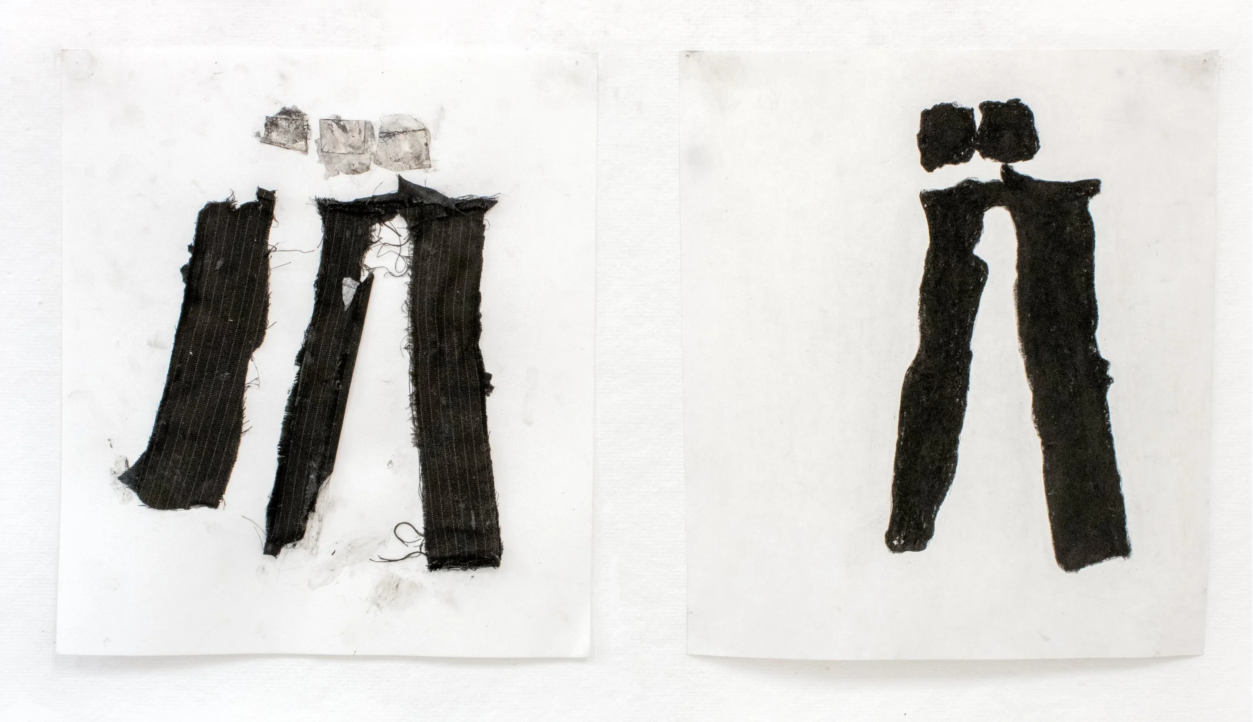 Drawing, Polaroid autoportraits, worn fabric, and charcoal on paper, 10 3/4’’ x 9 1/2’’ and 10 3/4’’ x 9 1/2’’, 2026