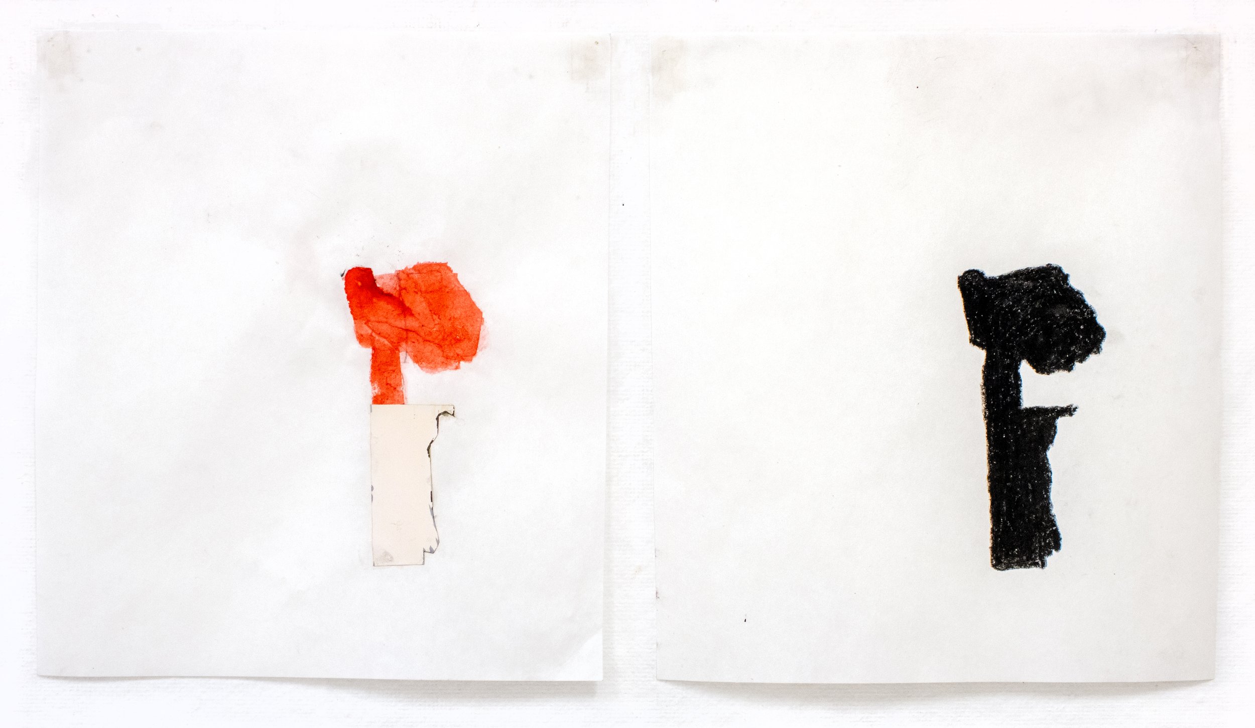 Drawing, Polaroid autoportraits, pencil, watercolor, and charcoal on paper, 10 3/4’’ x 9 1/2’’ and 10 3/4’’ x 9 1/2’’, 2026.