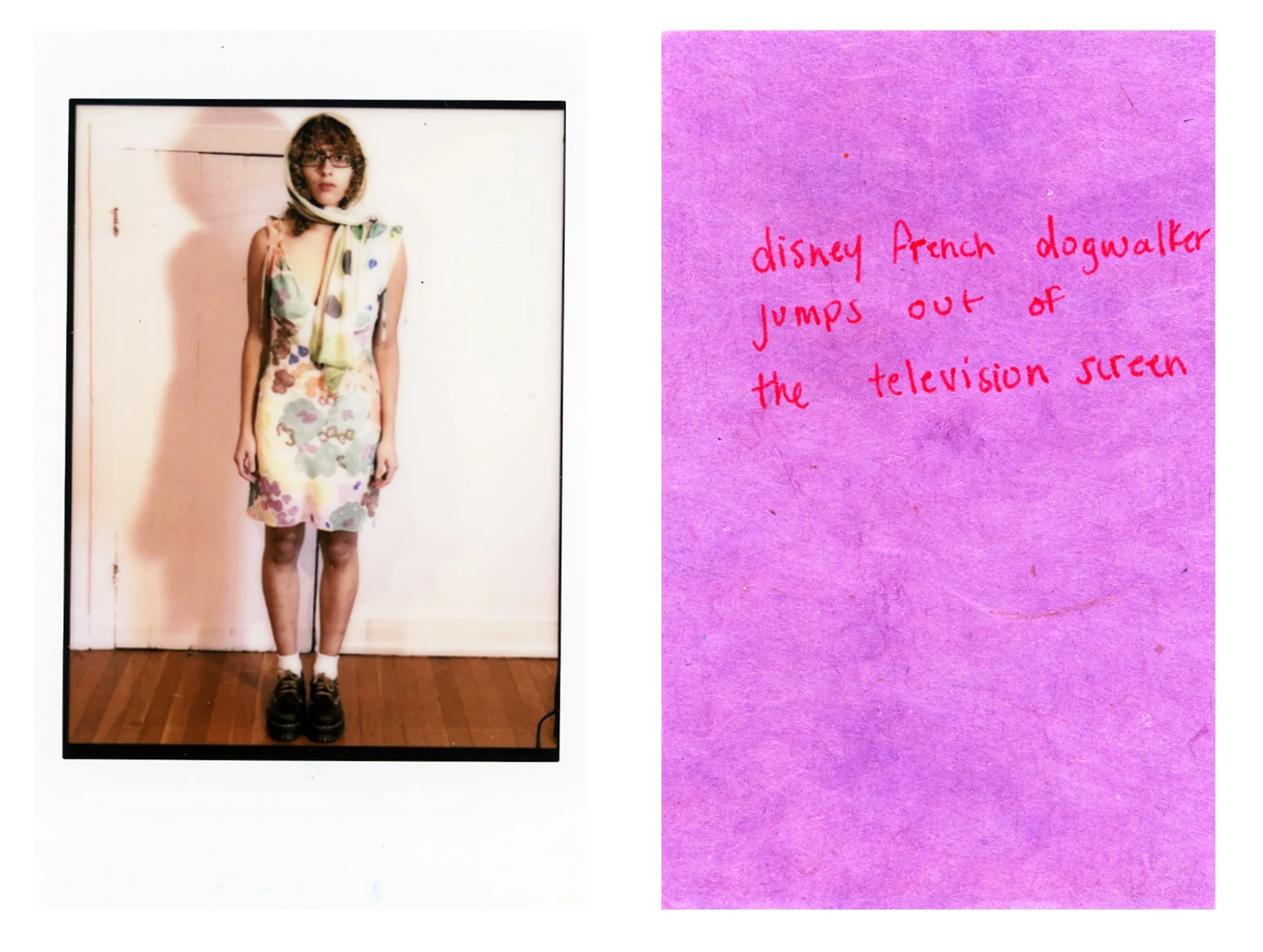 “Disney French dogwalker jumps out of the television screen,” Untitled Artist Book With Narrative Descriptors no. 1